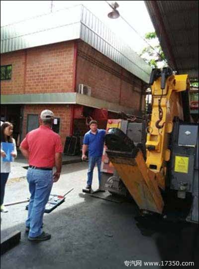 利用托臂的伸缩、提升、带载折叠等动作,将损坏的车辆从前部或后部托起,然后将整车拖离现场。清障车的托架有多种结构形式,一般能托举事故车的车轴、车轮、钢板弹簧、车架等,装拆方便。