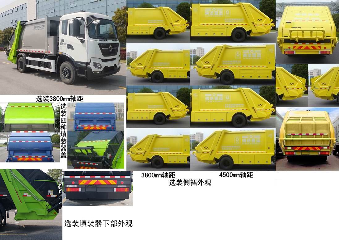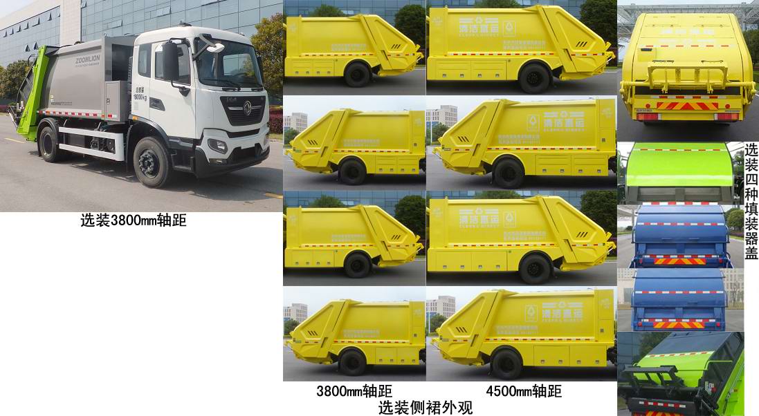 | 其它 | 扩展 | 该车选用底盘4500mm轴距.该车通过垃圾箱,填装机构等装置,达到垃圾收集装填及推挤卸料的作业功能;该车有6种配置:A(无上料装置,基本型),B(选装翻(铁)桶装置),C(选装提斗装置),D(选装翻斗装置) ,E(选装翻盖翻桶型装置),F(选装翻铁桶提斗装置).配置A时,整备质量10920kg,额定载质量6885kg;配置B时,整备质量11150kg,额定载质量6655kg;配置C,D,E时,整备质量11320kg,额定载质量6485kg.配置F时,整备质量11470kg,额定载质量6335kg;随底盘选装驾驶室,对应1400mm或1430mm两种前悬;配置A时,整车长8640mm或8670mm,后悬2740mm;配置B时,整车长9000mm或9030mm,后悬2740mm,后伸360mm;配置C时,整车长8730mm或8760mm,后悬2830mm.配置D时,整车长8680mm8710mm,后悬2780mm;配置E时,整车长8820mm或8850mm,后悬2700mm,后伸220mm;配置F时,整车长9000mm或9030mm,后悬2700mm,后伸400mm;该车还可选装3800mm轴距配置,此配置下只选装1400mm前悬和B配置,整车长8050mm,后悬2450mm,后伸400mm,整备质量10920kg,额定载质量6885kg;可选装四种后填装器盖,填装器上部可开启门,对尺寸,重量的变化可忽略不计;侧面防护装置的材料为铝合金,连接方式为螺栓连接,也可选装侧裙边替代侧面防护装置,选装侧裙下的配置B,3800mm轴距时的整备质量11050kg/11320kg,额定载质量6755kg/6485kg,4500mm轴距时的整备质量11320kg或11600kg,额定载质量6485kg或6205kg,其余参数不变,选装侧裙下的配置E,3800mm轴距时,对应整备质量11600kg,额定载质量6205kg,4500mm轴距时,对应整备质量11920kg,额定载质量5885kg,其余参数不变;后防护装置由工作装置替代,工作装置的离地高度为480mm;该车安装具有卫星定位功能的行驶记录仪;随底盘装D6.7NS6B230,D4.5NS6B190,DDi50E190-60发动机,对应的油耗值(L/100km)为23.7,24.4,23.9;随底盘装有ABS,ABS型号/生产厂家:3631010-C2000/东科克诺尔商用车制动系统(十堰)有限公司,ABS 8/东科克诺尔商用车制动系统(十堰)有限公司,4460046450/威伯科汽车控制系统(中国)有限公司. | 该车选用底盘4500mm轴距.该车通过垃圾箱,填装机构等装置,达到垃圾收集装填及推挤卸料的作业功能;该车有6种配置:A(无上料装置,基本型),B(选装翻(铁)桶装置),C(选装提斗装置),D(选装翻斗装置) ,E(选装翻盖翻桶型装置),F(选装翻铁桶提斗装置).配置A时,整备质量10920kg,额定载质量6885kg;配置B时,整备质量11150kg,额定载质量6655kg;配置C,D,E时,整备质量11320kg,额定载质量6485kg.配置F时,整备质量11470kg,额定载质量6335kg;随底盘选装驾驶室,对应1400mm或1430mm两种前悬;配置A时,整车长8640mm或8670mm,后悬2740mm;配置B时,整车长9000mm或9030mm,后悬2740mm,后伸360mm;配置C时,整车长8730mm或8760mm,后悬2830mm.配置D时,整车长8680mm8710mm,后悬2780mm;配置E时,整车长8820mm或8850mm,后悬2700mm,后伸220mm;配置F时,整车长9000mm或9030mm,后悬2700mm,后伸400mm;该车还可选装3800mm轴距配置,此配置下只选装1400mm前悬和B配置,整车长8050mm,后悬2450mm,后伸400mm,整备质量10920kg,额定载质量6885kg;可选装四种后填装器盖,填装器上部可开启门,填装器下部外观,对尺寸,重量的变化可忽略不计;侧面防护装置的材料为铝合金,连接方式为螺栓连接,也可选装侧裙边替代侧面防护装置,选装侧裙下的配置B,3800mm轴距时的整备质量11050kg/11320kg,额定载质量6755kg/6485kg,4500mm轴距时的整备质量11320kg或11600kg,额定载质量6485kg或6205kg,其余参数不变,选装侧裙下的配置E,3800mm轴距时,对应整备质量11600kg,额定载质量6205kg,4500mm轴距时,对应整备质量11920kg,额定载质量5885kg,其余参数不变;后防护装置由工作装置替代,工作装置的离地高度为480mm;该车安装具有卫星定位功能的行驶记录仪;随底盘装D6.7NS6B230,D4.5NS6B190,DDi50E190-60发动机,对应的油耗值(L/100km)为23.7,24.4,23.9;随底盘装有ABS,ABS型号/生产厂家:3631010-C2000/东科克诺尔商用车制动系统(十堰)有限公司,ABS 8/东科克诺尔商用车制动系统(十堰)有限公司,4460046450/威伯科汽车控制系统(中国)有限公司. |