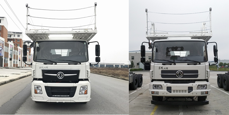 | 其它 | 扩展 | 随底盘选装前雾灯;侧防护材质铝合金,螺栓连接;后防护材料为Q235A,后防护支座与车体螺栓连接,后防护断面尺寸为140×60mm,离地高度为480mm,在牵引中置轴车辆运输挂车时,可将后防护拆卸;装有ABS,ABS型号及生产厂家:3631010-C2000/东科克诺尔商用车制动系统(十堰)有限公司;安装具有卫星定位功能的行驶记录仪;准拖挂车总质量为:18000Kg,17480Kg;该车可牵引中置轴车辆运输挂车,中置轴挂车的牵引杆深入量1080mm,1680mm,1880mm,中置轴牵引杆连接器最大负荷1000kg;发动机D6.7NS6B320对应油耗申报值为25.1L/100km. | 随底盘选装驾驾驶室,前雾灯,选装左置空滤器及引气管,选装尿素壶位置,选装EGP布置.侧防护材质铝合金,螺栓连接;后防护材料为Q235A,后防护支座与车体螺栓连接,后防护断面尺寸为140×60mm,离地高度为480mm,在牵引中置轴车辆运输挂车时,可将后防护拆卸;装有ABS,ABS型号及生产厂家:3631010-C2000/东科克诺尔商用车制动系统(十堰)有限公司;安装具有卫星定位功能的行驶记录仪;准拖挂车总质量为:18000Kg,17480Kg;该车可牵引中置轴车辆运输挂车,中置轴挂车的牵引杆深入量1080mm,1680mm,1880mm,中置轴牵引杆连接器最大负荷1000kg;发动机D6.7NS6B320对应油耗申报值为25.1L/100km. |