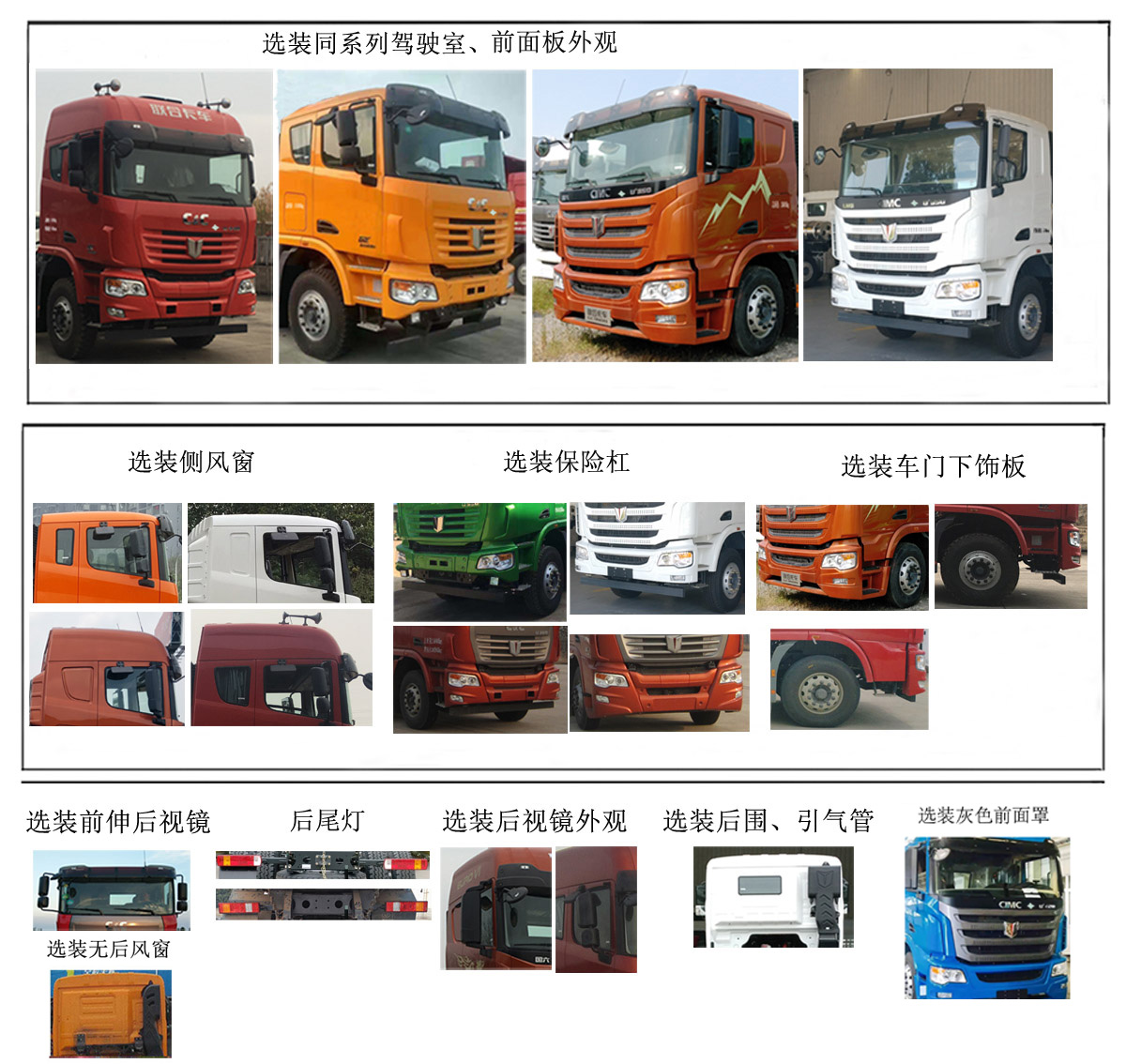 | 其它 | 扩展 | 选装同系列驾驶室(高,低顶驾驶室高度分别为3650mm和3250mm),前面板,侧风窗,保险杠,车门下饰板,前伸后视镜和后视镜外观,后围引气管,无后风窗,后尾灯.WP10HNG350E60的净功率为252kW.ABS生产厂(型号)为:浙江万安科技股份有限公司(VIE ABS-Ⅱ).安装具有卫星定位功能的行驶记录仪. | 选装同系列驾驶室(高,低顶驾驶室高度分别为3650mm和3250mm),前面板,侧风窗,保险杠,车门下饰板,前伸后视镜和后视镜外观,后围引气管,无后风窗,后尾灯,灰色前面罩.WP10HNG350E60的净功率为252kW.ABS生产厂(型号)为:浙江万安科技股份有限公司(VIE ABS-Ⅱ).安装具有卫星定位功能的行驶记录仪. |