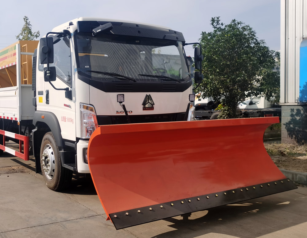这款除雪车车前还可以安装自带动力的滚雪刷或者除雪铲,滚雪刷转速可根据雪情和路况进行自动调节,节能环保。滚雪刷操作简便,在驾驶室内安装独立电控操作装置,作业安全可靠,操作方便。