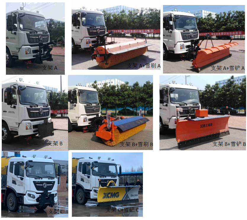 选用4500mm和4200mm轴距,ABS型号:3631010-C12000,ABS 8,4460046450,J ABS;ABS生产企业:东科克诺尔商用车制动系统(十堰)有限公司,东科克诺尔商用车制动系统(十堰)有限公司,威伯科汽车控制系统(中国)有限公司,焦作博瑞克控制技术有限公司;选装限速装置;限速装置限速(km/h):89;选装描述:选装A,B,C三种挂板,用于安装仅在作业时使用的雪刷A/B,雪铲A/B/C;选装四种撒布机.选用4500mm轴距(对应后悬2900mm)时:长(mm)/高(mm)/前悬(mm)/接近角(°)/后伸(mm)对应关系分别为:支架A+撒布机具1、2时:9975/3170/2455/13/120,支架B+撒布机具1、2时:9270/3170/1750/17/120,支架A+撒布机具3、4时: 10235/3315(3440)/2455/13/380,支架B+撒布机具3、4时:9530/3315(3440)/1750/17/380,作业时安装滚刷、雪铲,长(mm)/高(mm)/前伸(mm)/前悬(mm)/后伸(mm)对应关系为:滚刷A+支架A+撒布机具1、2时:11530/3170/1555/2455/120;雪铲A+支架A+撒布机具1、2时:10785/3170/810/2455/120;滚刷B+支架B+撒布机具1、2时:11495/3170/2225/1750/120;雪铲B+支架B+撒布机具1、2时:10570/3170/1300/1750/120;滚刷A+支架A+撒布机具3、4时:11790/3315(3440)/1555/2455/380;雪铲A+支架A+撒布机具3、4时:11045/3315(3440)/810/2455/380;滚刷B+支架B+撒布机具3、4时:11755/3315(3440)/2225/1750/380;雪铲B+支架B+撒布机具3、4时:10830/3315(3440)/1300/1750/380;选用4200mm(对应后悬2650mm)轴距时:长(mm)/高(mm)/前悬(mm)/接近角(°)/离去角(°)/后伸(mm)对应关系分别为:支架C+撒布机具1时:8690/3225/1630/17/9/210,作业时安装雪铲,长(mm)/高(mm)/前伸(mm)/前悬(mm)/后伸(mm)对应关系为:雪铲C+支架C+撒布机具1时:9990/3225/1300/1630/210;因选装件引起的质量变化在3%以内.随底盘选装高度不同的驾驶室;选装前雾灯;选装驾驶室顶部装饰灯;选装驾驶室前面罩;选装前保险杠及前部灯具,选装前下视镜,选装与车身颜色相同的前保险杠,选装不同结构的车门裙板,选装无车门裙板,选装驾驶室卧铺侧窗装饰板.选装后视镜;驾驶室前脸扰流罩为选装件;选装踏步结构;随底盘选装后组合灯.选装前号牌板样式;选装后牌照板位置;选装上装样式;侧后防护情况:侧防护材质为Q345,螺栓连接,后防护材质为Q345,螺栓连接,后防护断面尺寸为120×120(mm),离地高度为440mm;当选用4200mm轴距时,选装侧防护材质为Q235B,选装新型后防护,材质为Q345,螺栓连接,后防护断面尺寸为180×80(mm),离地高度为440mm专用功能及装置:该车专用装置为雪铲或撒布机等,主要用于冬季道路清除积雪;前伸尺寸:1555mm,810mm,2225mm,1300mm,1630mm;后伸尺寸:120mm,380mm,210mm. |