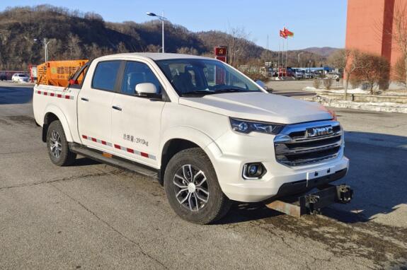 车辆前部可选装前支架,后部可选装撒布机及动力装置,对应车辆有以下几种状态,分别为A、B、C、D、E、F、G.A:前部选装前支架,后部按装撒布机,整车长度6250mm,前伸125mm,后伸495mm,接近角13°.B:前部无选装,后部选装撒布机,整车长度6133mm,前悬923mm,后伸495mm,接近角28.5°.C:前部选装除雪铲,后部选装撒布机,整车长度6995mm,前伸870mm,后伸为495mm,接近角28.5°.D:前部选装除雪滚刷,后部选装动力装置,整车长度7075mm,前伸1445mm ,接近角13°.E:前部选装前支架,后部安装动力装置,整车长度5755mm,前伸125mm,接近角13°.F:前部选装除雪铲,后部按装动力装置,整车长度6500mm,前伸870mm,接近角13°.G:前部无选装,后部选装动力装置整车长度5638mm,接近角28.5°.选装天窗、铝轮、黑色门把手、LED前组合灯、黑色前下侧护板、B柱黑色贴膜、前保险杠、中网、熏黑前大灯、前雾灯、前位灯、前转向灯、昼行灯、带PEPS按键的侧门把手、尾门把手.发动机JX4D20A6L最大净功率为102KW.ABS系统型号/生产厂家:EV7021/博世汽车部件(苏州)有限公司、APG3550G500/浙江亚太机电股份有限公司、APG3550500G/浙江亚太机电股份有限公司. |