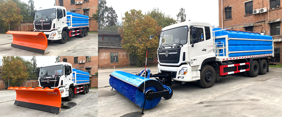 这款除雪车车前还可以安装自带动力的滚雪刷或者除雪铲,滚雪刷转速可根据雪情和路况进行自动调节,节能环保。滚雪刷操作简便,在驾驶室内安装独立电控操作装置,作业安全可靠,操作方便。