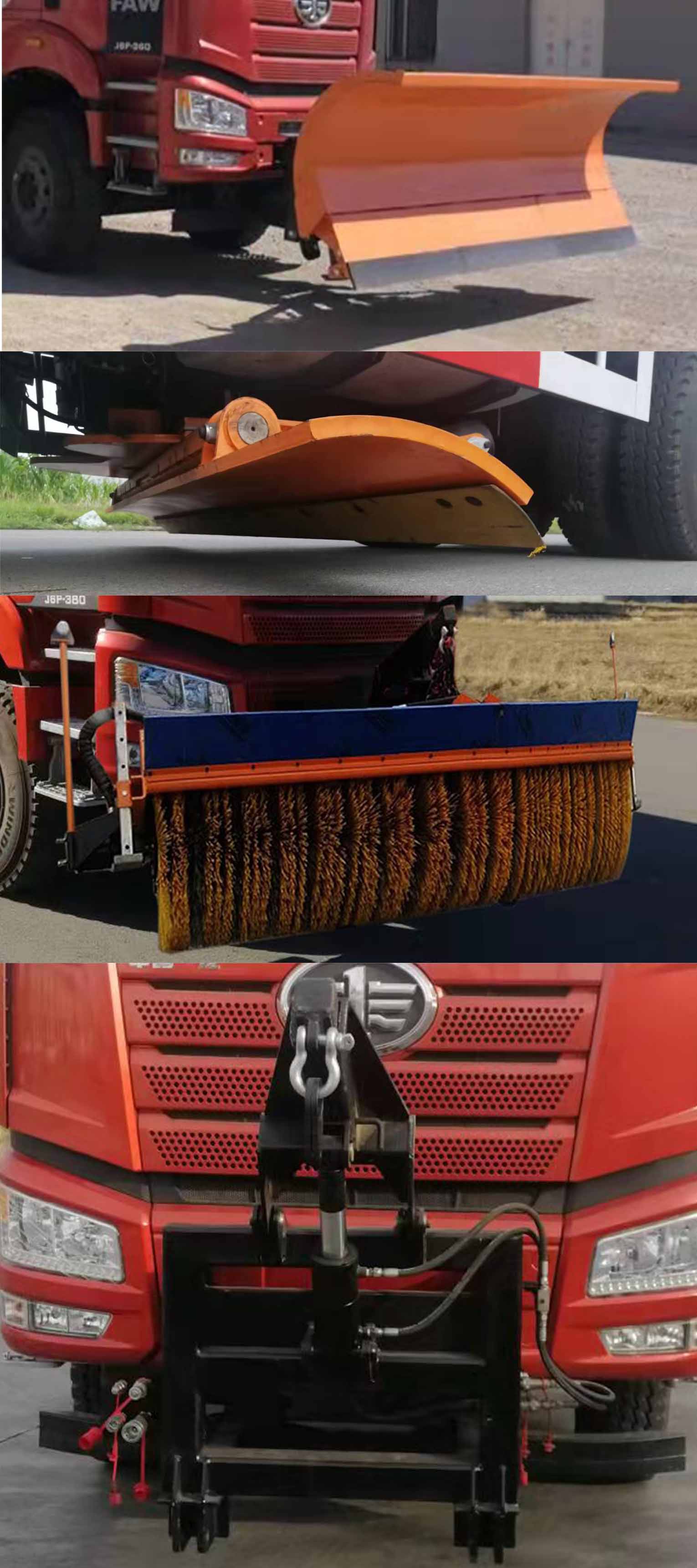 这款除雪车车前还可以安装自带动力的滚雪刷或者除雪铲,滚雪刷转速可根据雪情和路况进行自动调节,节能环保。滚雪刷操作简便,在驾驶室内安装独立电控操作装置,作业安全可靠,操作方便。