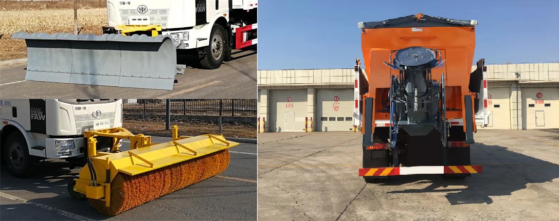 这款除雪车车前还可以安装自带动力的滚雪刷或者除雪铲,滚雪刷转速可根据雪情和路况进行自动调节,节能环保。滚雪刷操作简便,在驾驶室内安装独立电控操作装置,作业安全可靠,操作方便。