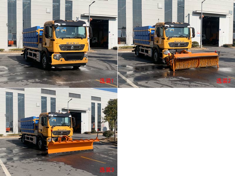 车辆用于道路除冰除雪作业,安装有液体融雪剂撒布装置.选装1:不带前部连接支架及工作灯,车长8090mm,前悬1430mm,接近角为19°,质量在误差以内忽略不计;选装2:仅在除雪作业时,前部连接架安装除雪滚刷;选装3:仅在除雪作业时,前部连接架安装推雪铲;仅选用4500mm轴距;仅选用钢板弹簧悬架; 侧防护材质:铝合金,后防护材质:Q235A,连接方式都为螺栓连接;后防护断面尺寸80×140mm,离地高度385mm; ABS型号/生产厂家:4460046300/威伯科(上海)管理有限公司;选装EBS,EBS型号/生产厂家:EBS3/威伯科(上海)管理有限公司;安装带卫星定位功能的行驶记录仪;该车型可选装ETC车载装置. |