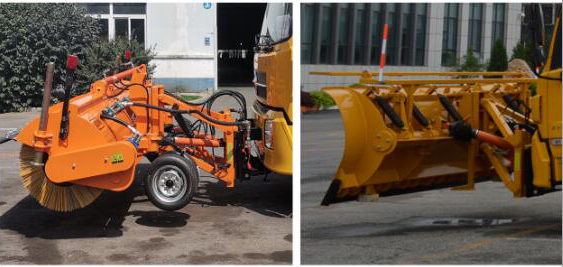 这款除雪车车前还可以安装自带动力的滚雪刷或者除雪铲,滚雪刷转速可根据雪情和路况进行自动调节,节能环保。滚雪刷操作简便,在驾驶室内安装独立电控操作装置,作业安全可靠,操作方便。