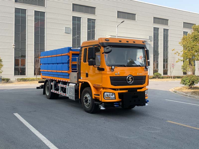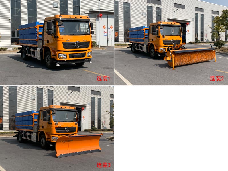 车辆用于道路除冰除雪作业,安装有液体融雪剂撒布装置.选装1:不带前部连接支架及工作灯,车长8270mm,前悬1340mm,质量在误差以内忽略不计;选装2:仅在除雪作业时,前部连接架安装除雪滚刷;选装3:仅在除雪作业时,前部连接架安装推雪铲;仅选用4500mm轴距;仅选用钢板弹簧悬架;侧防护材质:铝合金,后防护材质:Q235A,连接方式都为螺栓连接;后防护断面尺寸80×140mm,离地高度385mm;ABS型号/生产厂家:ZQFB-V/西安正昌电子股份有限公司;安装带卫星定位功能的行驶记录仪;该车型可选装ETC车载装置. |