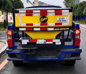在上装配置上,该车整车外形尺寸为:5950,7450×1880×1780(mm),用户需根据自我实际作业环境选择适合工况的车型。这款除雪车专用装置安装的是不小2吨的融雪撒布机,V型料仓采用碳钢制作,内部做三级防腐处理,结构简单,操作方便,使融雪剂自动落料,出料万全,无残留;