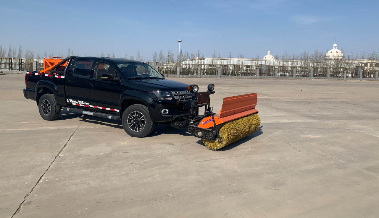 这款除雪车车前还可以安装自带动力的滚雪刷或者除雪铲,滚雪刷转速可根据雪情和路况进行自动调节,节能环保。滚雪刷操作简便,在驾驶室内安装独立电控操作装置,作业安全可靠,操作方便。