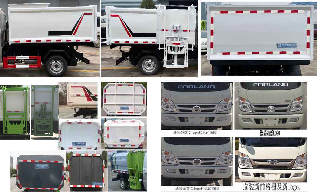 1、该车专用装置为箱体及提升机构,用于垃圾的收集与转运;自卸方式为后卸式;侧、后防护采用Q235,侧防护螺栓连接;后防护焊接,截面尺寸为(mm)100×50,离地高400mm;选装侧部及后部结构样式;外形长/轴距/后悬对应关系为(mm):4670/2600/955,4850/2600/1135;2、ABS型号为CM4YL,生产厂家为广州瑞立科密汽车电子股份有限公司;仅采用2600mm轴距;随底盘选装驾驶室;选装油箱样式及底盘附件安装位置,选装ETC车载装置;发动机型号和油耗值对应关系(L/100km):Q23-95C60/9.69,Q23-95E60 /9.69,该车配备备胎,随车工具等,货箱约738kg,材质为Q235碳钢,材料厚度2.5mm。 |