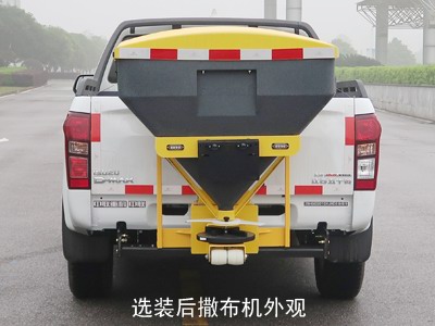 该车装配撒布机等专用装置,用于路面除雪作业;配置有两种状态;状态a:前部装前支架,后部装撒布机,车辆前伸120mm,后伸580mm,整车长度5995mm,接近角14°,离去角17°,整备质量2030Kg;状态b:前部无选装,后部装撒布机,后伸580mm,整车长度5875mm,接近角25°,离去角17°,整备质量1990Kg;随底盘装有ABS,ABS系统型号/生产厂家:V3G-N/爱德克斯(广州)汽车零部件有限公司.随底盘选装后部标识外观.选装后撒布机外观. |