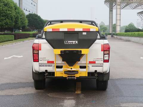 在上装配置上,该车整车外形尺寸为:5995,5875×1860×1830(mm),用户需根据自我实际作业环境选择适合工况的车型。这款除雪车专用装置安装的是不小2吨的融雪撒布机,V型料仓采用碳钢制作,内部做三级防腐处理,结构简单,操作方便,使融雪剂自动落料,出料万全,无残留;