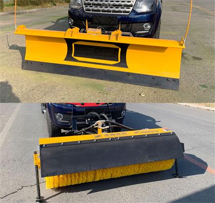 这款除雪车车前还可以安装自带动力的滚雪刷或者除雪铲,滚雪刷转速可根据雪情和路况进行自动调节,节能环保。滚雪刷操作简便,在驾驶室内安装独立电控操作装置,作业安全可靠,操作方便。