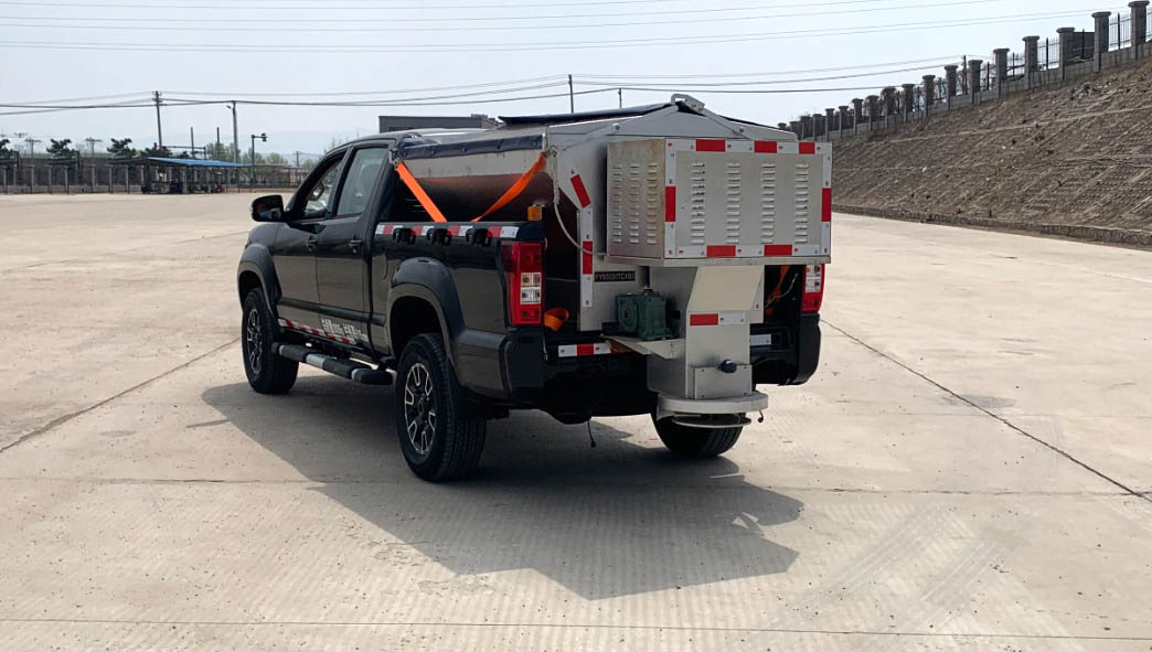 在上装配置上,该车整车外形尺寸为:6506,7331,5980,5560×1840×1850,1860(mm),用户需根据自我实际作业环境选择适合工况的车型。这款除雪车专用装置安装的是不小2吨的融雪撒布机,V型料仓采用碳钢制作,内部做三级防腐处理,结构简单,操作方便,使融雪剂自动落料,出料万全,无残留;