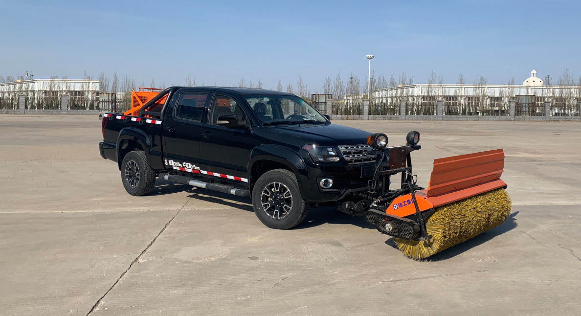 这款除雪车车前还可以安装自带动力的滚雪刷或者除雪铲,滚雪刷转速可根据雪情和路况进行自动调节,节能环保。滚雪刷操作简便,在驾驶室内安装独立电控操作装置,作业安全可靠,操作方便。