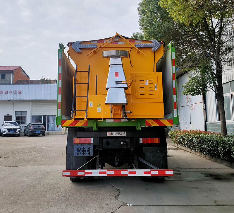 在上装配置上,该车整车外形尺寸为:8800×2550×3200,3400(mm),用户需根据自我实际作业环境选择适合工况的车型。这款除雪车专用装置安装的是不小2吨的融雪撒布机,V型料仓采用碳钢制作,内部做三级防腐处理,结构简单,操作方便,使融雪剂自动落料,出料万全,无残留;