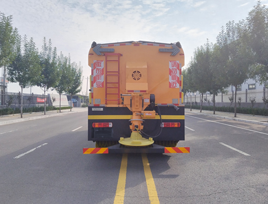 在上装配置上,该车整车外形尺寸为:10875,11120,12675,12760×2550×3120(mm),用户需根据自我实际作业环境选择适合工况的车型。这款除雪车专用装置安装的是不小2吨的融雪撒布机,V型料仓采用碳钢制作,内部做三级防腐处理,结构简单,操作方便,使融雪剂自动落料,出料万全,无残留;