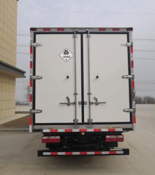 | 其它: | 1.车厢顶部封闭,不可开启;2.选装功率相当的制冷机组,制冷机组可取消,选装右侧单开门;3.安装限速装置,限速80km/h;排气管前置;安装前轮盘式制动器;安装具有卫星定位功能的行驶记录仪;安装子午线轮胎;4.该车为危险品运输车,运输感染性物质,类项号6.2;5.侧面及后下部防护装置材料为Q235,连接方式为螺栓连接,后部防护装置断面尺寸(长×宽):120mm×60mm,离地高度为490mm;6.ABS控制器型号及生产企业:CM4XL-4S/4M,广州瑞立科密汽车电子控制技术股份有限公司;7.仅采用WP3Q130E50发动机,发动机对应的油耗申报值(L/100km)为:11.4; | ||