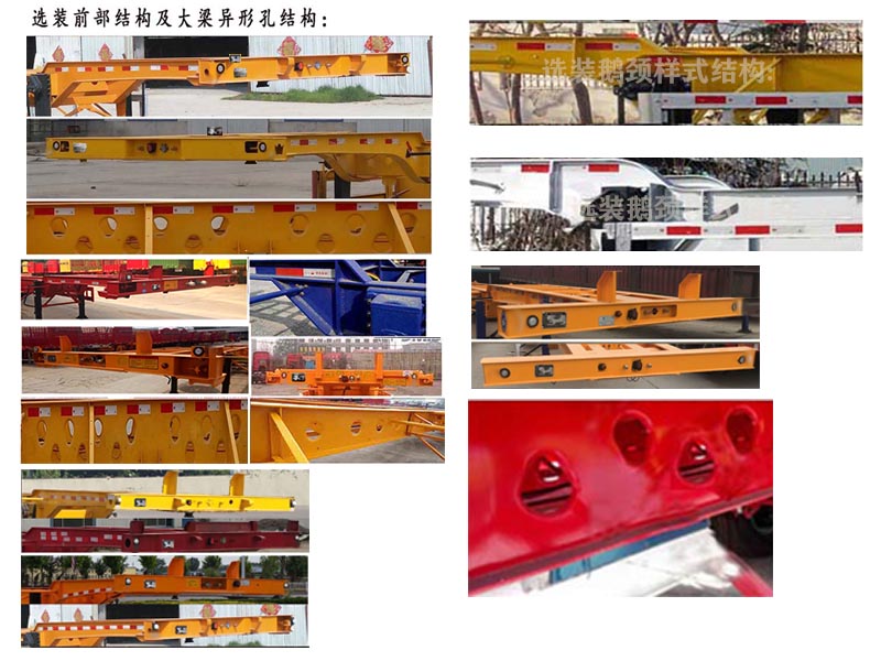 | 其它: | 运输45英尺集装箱(1EE型),牵引销处车架总高度190mm,170mm,150mm,130mm.ABS系统生产厂家/型号:广州市西合电子装备有限公司/XH-GQ4S2M-E01;侧防护材质Q235,与车身连接方式为螺栓连接,后部防护装置材质Q235,连接方式:焊接连接,后防护断面高度/断面宽度/离地高度:140mm/55mm/500mm,后部推车块为选装件,选装工具箱材质及样式(钢质或铝质),选装前后部及外形样式.选装导向块,选装大梁及横梁冲孔样式及冲孔位置.参数对应关系(外形长/牵引销中心距前端距离/轴距/后悬):13950/380/9200+1310/3060;13950/880/8700+1310/3060;13950/1080/8700+1310/2860;13950/1280/8500+1310/2860,选装外形高度及宽度引起的质量变化小于3%. | ||