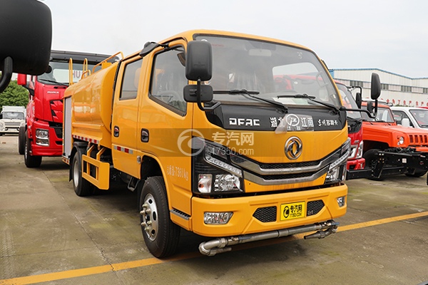 前喷后洒,前装有鸭形喷嘴或圆头冲嘴,后面装有圆柱开洒水喷嘴或莲蓬头喷嘴,后部有一工作平台,装配有高压水炮。后部还可装8个喷嘴(选装)喷水器一般用于冲洗街道。