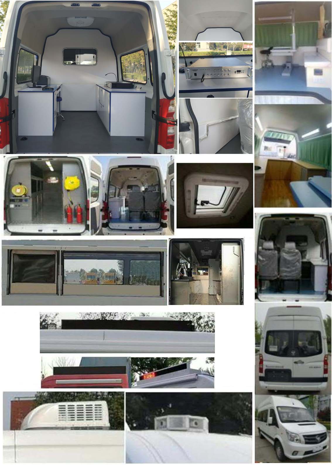 1、随基础车选装前雾灯、平推窗、铝轮、轮罩、轴头盖、倒车雷达、电动外挂侧滑门踏板、前格栅和保险杠颜色、后视镜、中高顶、270度后开门门铰链.2、选用发动机最大净功率为109kW.3、ABS系统控制器型号/生产企业:YF8/武汉元丰汽车电控系统有限公司.4、车辆装备工作台,储物柜,办公设备,供电系统等流动服务设施.选装遮阳蓬、工具舱、地环、线缆盘、器材架、有机玻璃办公窗、液晶电视、显示器、摄像系统、LED显示屏、车身两侧上掀门、上掀窗、顶置空调、独立底置空调、顶置喇叭、换气扇、逆变器等电器设备、车身两侧及后部选装车外照明灯、车尾可选装爬梯.5、车顶可不选装工作平台(中顶车高2445mm,高顶车高2640mm,超高顶车高2693mm);选装顶置空调(中顶车高2740mm,高顶车高2935mm,超高顶车高2988mm);选装LED屏、顶置喇叭、换气扇(中顶车高2610mm,高顶车高2805mm,超高顶车高2858mm);中顶车整备质量2600kg,高顶车整备质量2750kg.6、该车型可选装ETC车载装置. |