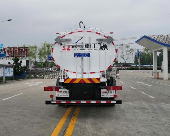 加装罐体及清洗装置,用于清理路面或管道沉积物或清洗机械表面;仅选用4600+1350mm轴距,仅选用底盘后悬架形式为非独立式钢板弹簧;罐体有效容积为:14.1立方米,罐体尺寸(长×长轴×短轴)(mm):5800×2290×1590;选装前部加前置高压清洗装置时,整车外形尺寸(mm)为10975,10725×2550×3200,前伸为:850mm,接近角/离去角为:9/12,9/11,前悬/后悬为:1550/2625,1550/2375,前部不加前置高压清洗装置时,整车外形尺寸(mm)为10125,9875×2550×3200,接近角/离去角为:12/12,12/11,前悬/后悬为:1550/2625,1550/2375.选装后部不加装箭头式指示灯,选装后部平台样式及护栏高度,选装后部罐体上部不加装喷雾装置;选装后部喷雾装置;选装外观喷涂;侧后防护装置材料均为:Q235,侧防护装置与车辆连接方式为螺栓连接,后防护装置与车辆连接方式为焊接,后防护装置截面尺寸为:120×68mm,离地高度480mm;ABS系统型号为446 004 6300,生产企业为威伯科汽车控制系统(中国)有限公司. |