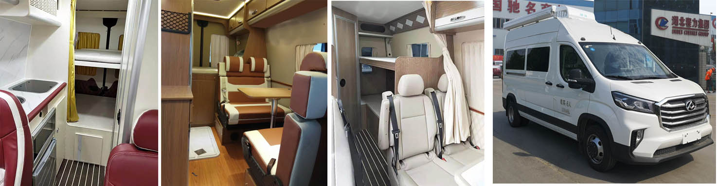 车内设有:睡具,炊具,小桌,卫生间等设施,选装高顶安装空调时整车高(mm):3000,选装高顶安装排气扇时整车高(mm):2800,选装低顶安装排气扇时整车高(mm):2620,ABS型号:ABS 9,ESP9.ABS生产企业:博世汽车部件(苏州)有限公司,博世汽车部件(苏州)有限公司,随底盘选装不同样式的外形,扩展侧面推窗以及后部高低床。 |