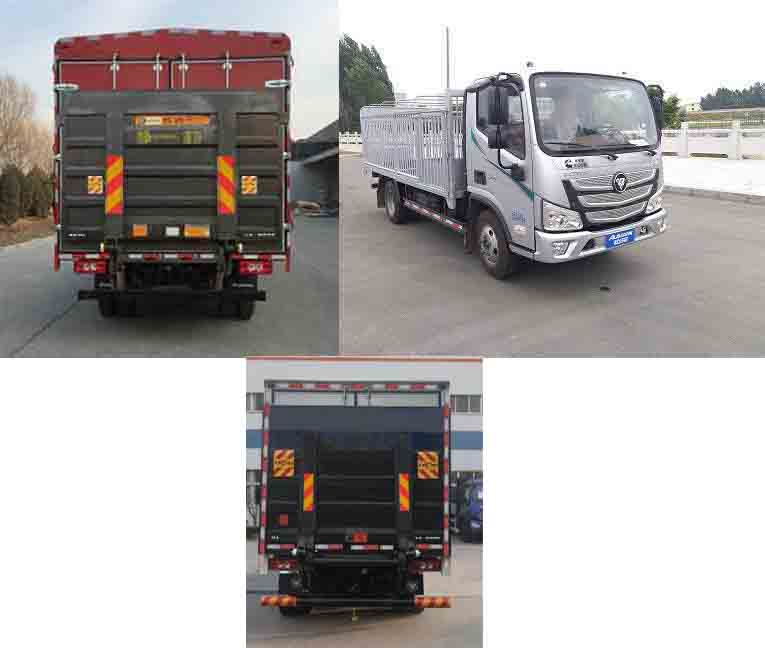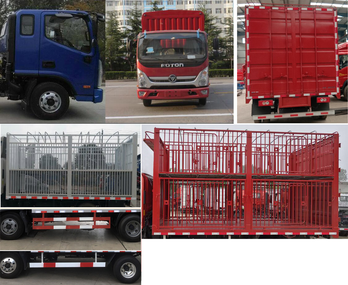 福田牌福田欧马可国五仓栅式蓝牌畜禽运输车