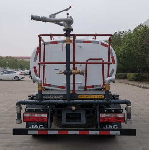 ABS型号:CM4XL-4S/4M,VIE ABS-Ⅱ;ABS生产企业:广州瑞立科密汽车电子股份有限公司,浙江万安科技股份有限公司;选装描述:随底盘选装改前围面板,进气格栅,前组合灯具的驾驶室;选装雾炮;仅选用底盘轴距3365mm;侧后防护情况:材料/连接方式:Q235/螺栓连接,后下部防护装置断面尺寸(高×宽)/离地高度(mm):100×50/440;罐体有效容积(立方米)、罐体外形尺寸(mm):1.11立方米,(长轴×短轴×长)(mm):1700×1040×3000(其中罐体前端1280mm用来安装高压泵,800mm为工具箱);专用功能及装置:装备有水罐、水路及作业装置,用于城镇环境清洗及清洁作业;前伸尺寸:100mm; |