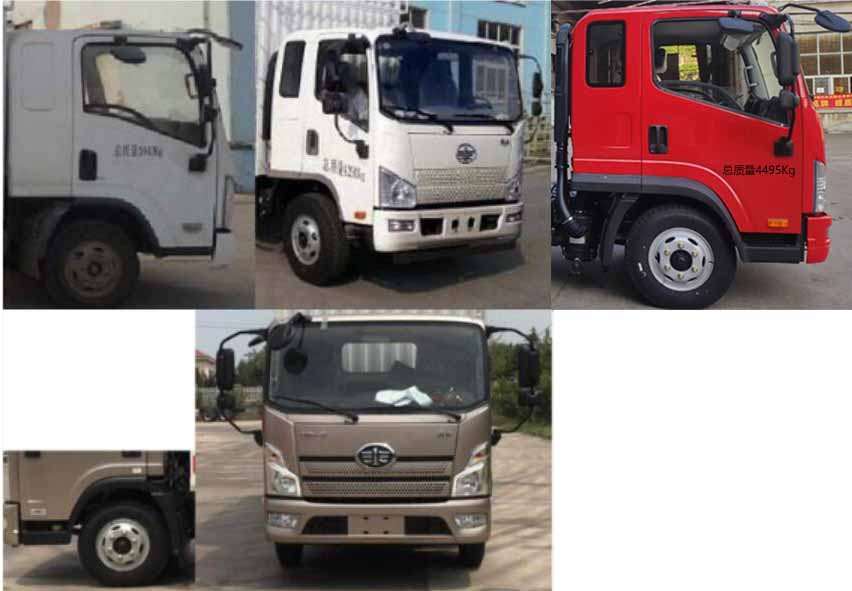 车厢底板到顶部高度为1900,2100,2300mm.选装不带导流罩.选装排半驾驶室.选装改侧窗的驾驶室.油耗值12.0,12.2,12.3分别对应发动机CA4DD1-11E5,CA4DD1-13E5,CA4DD1-15E5.侧防护及后下部防护装置的材质为R13钢,连接方式为螺栓连接,后部防护离地高度460mm,断面尺寸为100×40mm.ABS生产厂家/型号:1.广州瑞立科密汽车电子股份有限公司/CM4XL-4S/4M;2.浙江万安科技股份有限公司/VIE ABS-II.选装双加油口的油箱.选装同系列新前脸的驾驶室,选装新的翼子板结构.选装新结构的货厢. |