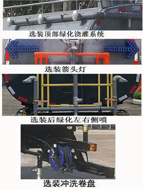 ABS型号:3631010-C2000;ABS生产企业:东科克诺尔商用车制动系统(十堰)有限公司;选装描述:随底盘选装驾驶室;所用材料材质、连接方式以及后部防护装置的主要尺寸参数(断面尺寸和离地高度):侧防护装置材质为铝合金,采用螺栓连接;后防护装置材质为Q345B,采用螺栓连接,截面尺寸为180×65(mm),最大离地高度460mm;罐体有效容积(立方米)、罐体外形尺寸(mm):罐体有效容积6.7立方米;罐体外形尺寸(mm)(长轴X短轴X罐长):2176X1280X3510;介质名称:水,密度:1000千克/立方米;专用功能及装置:该车配有水罐总成,清洗装置,水路和控制系统等,用于清洗作业;其他说明:选用3950mm轴距;顶部侧绿化浇灌系统、箭头指示灯、尾部左右侧喷、冲洗卷盘为选装件;该车安装具有卫星定位功能的行驶记录仪;车型可选装ETC车载装置; |
