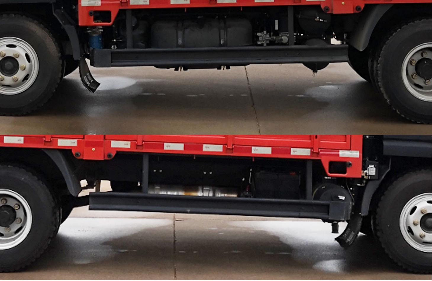 选装排半驾驶室,选装前围及灯具,选装视镜风格,选装爬梯装置;该车仅选装3360轴距.侧面及后下部防护装置材料为Q235A,连接方式为螺栓连接;后部防护装置截面尺寸50×100,50×120,离地高度为450,460;ABS系统控制器型号为446 004 320 0,VIE ABS-II,ABS-VI·E,ABS8.8 ECU 24V,生产厂家为威伯科汽车控制系统(中国)有限公司,浙江万安科技股份有限公司,广州瑞立科密汽车电子股份有限公司,东科克诺尔商用车制动系统(十堰)有限公司.发动机型号WP3.7Q130E50,YNF40E2,YC4S150-50,YNF40E1,WP4.1Q165E50,YN27CRE10分别对应油耗申报值为12.1,12.3,12.4,12.8,12.7,12.1,单位:L/100km.整车尺寸对应关系:5995=1120+3360+1515,5995=1140+3360+1495,5995=1160+3360+1475,尺寸单位为mm |