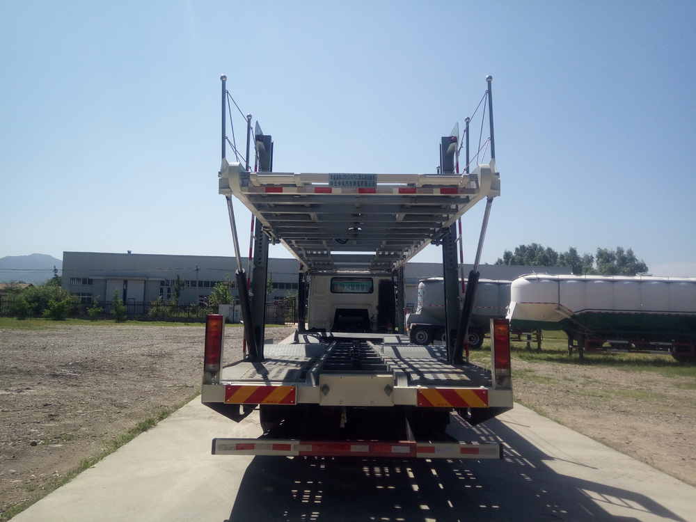 华盛源牌陕汽德龙新M3000小三轴国五车辆运输车轿运车在从前面看,驾驶室没有什么变化,外形尺寸为11580,11400×2550×3940,3800(mm),在车长和车宽上都做了调整,安全性大大提高了,整车的上户吨位为9170,9570(kg),总质量为21000(kg),上装配备多个液压油缸,材料都是用的低合金高强度结构钢制作而成,强度高,焊接性好,耐腐蚀,可以有效延长轿运车使用寿命。
