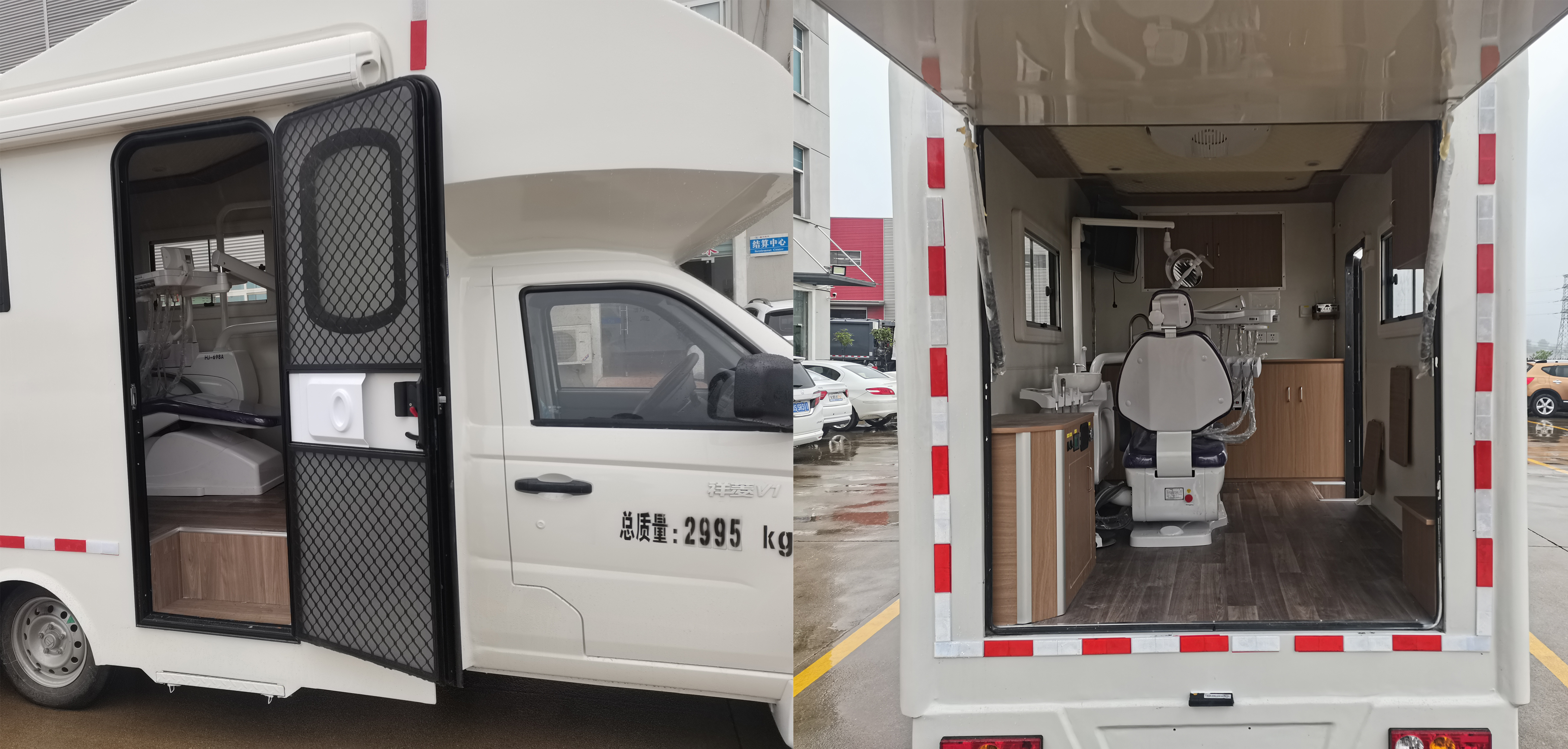 ABS型号:YF9;ABS生产企业:武汉元丰汽车电控系统有限公司;选装描述:随底盘选装驾驶室;车厢顶部封闭且不可开启;专用功能及装置:该车配备牙科综合治疗机、保洁柜、工具柜等专用设备,用于流动服务作业;其他说明:整车长/轴距/后悬/外形长分别为(mm): 5240/3070/605/1565, 5240/3170/605/1465; |