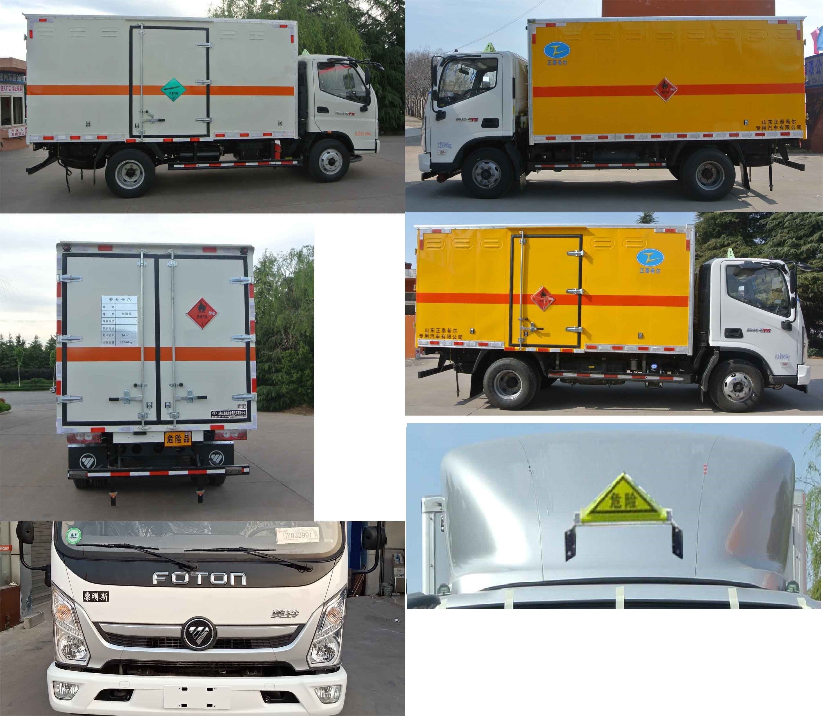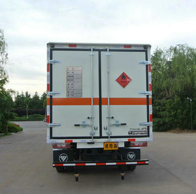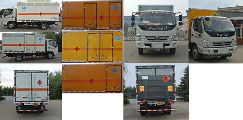 厢体顶部封闭,不可开启;厢体选装无侧门;选装瓦楞工艺厢体;车身侧面及后部粘贴橙色反光标识和标志牌,在车体后部设置安全标示;该车为危险货物运输车;运送危险品类项号:2.1;2.2;该车安装具有卫星定位功能的行驶记录仪;侧防护装置材料为管Q235,与车辆连接方式为螺栓连接;后防护装置材料为管 Q345A,与车辆连接方式为螺栓连接;后防护断面宽100×50mm,离地高420mm;ABS型号为APG3550500A,生产企业为浙江亚太机电股份有限公司.ABS型号为ABS-E,生产企业为威伯科汽车控制系统(中国)有限公司;仅用子午线轮胎,仅用底盘限速装置及前盘制动;仅选用底盘的排气管前置;随底盘选装相关附件;发动机油耗:ISF3.8s5141(12.5),ISF2.8s5R117(12.9),4J28TC3(12.71);选装后门百页窗;选装多种形式的侧开门;选装前板通风孔;选装液压尾板,尾板收起状态的水平长度295mm;随底盘选装侧转向灯;随底盘选装新前围,随底盘选装驾驶室侧电瓶位置,副驾驶室侧油箱位置;选装导流罩;该车型可选装ETC车载装置;转向轮安装爆胎应急防护装置 |