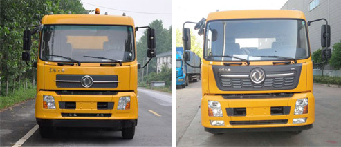 随底盘选装驾驶室.当整车长为:12000mm时,整备质量为:9950kg,托举质量:5655kg;该车专用装置后伸1480mm.当整车长为:10520mm时,整备质量为9050kg,无后伸.侧防护材料碳钢/Q235B,螺栓连接,后防护由专用装置代替,下边缘离地高450mm。ABS型号:3631010-C2000,4460046440.生产厂家:东科克诺尔商用车制动系统(十堰)有限公司;威伯科汽车控制系统(中国)有限公司.选装外观样式. |