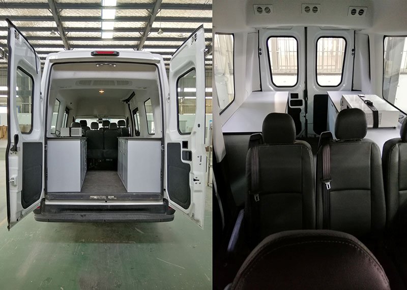 拓锐斯特牌南京依维柯国五流动服务车在外观时尚霸气造型圆润流畅,可有效降低风阻系数,整车外形尺寸为5670×2011×2726,2929,2966,3129,3179(mm),厢体采用玻璃钢复合车身结构及阻燃保温材料,做工精细;房厢内部配置齐全。