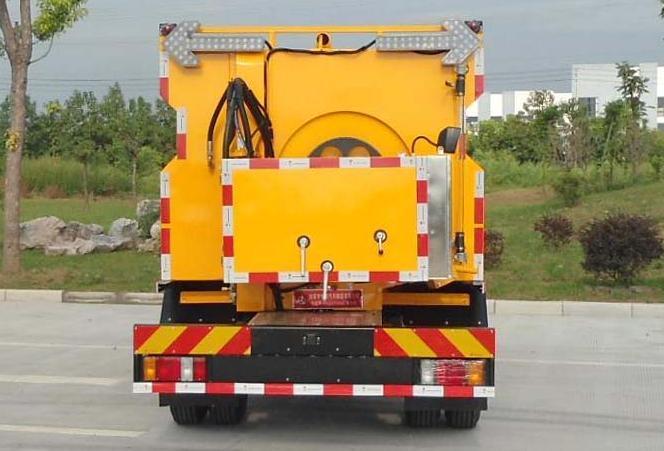 罐体有效容积3.26立方米,罐体外形尺寸为长×宽×高(mm):1700×1850×1400,运输介质:水,密度:1000千克/立方米。侧面防护装置材料:3A21,连接方式:横竖杆之间螺栓连接,与车架之间螺栓连接。后下部防护装置材料为:Q235-A,规格350×60槽钢,连接方式:横杆和连接板之间焊接,连接板和车架之间螺栓连接,离地高度415mm。ABS及其控制器型号/生产企业对应关系为:APG3550500A/浙江亚太机电股份有限公司,CM4YL/广州瑞立科密汽车电子股份有限公司;装气压制动系统时,ABS及其控制器型号/生产企业对应关系为:CM 4XL-4S/4M/广州瑞立科密汽车电子股份有限公司。随底盘选装后视镜款式、标牌以及仅变化灯具、格栅的驾驶室样式。专用功能为作业场地清洗、下水道疏通清洗,专用装置为罐体(用于存储清水)和清洗装置(用于冲洗)。选装后部控制柜手柄。 |