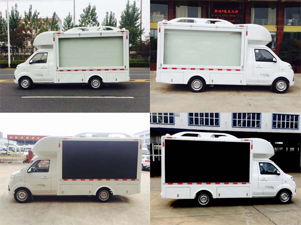 富园牌HFY5020XXCC型宣传车整车的外形尺寸为5210×1760×2720(mm),车身颜色搭配LED显示屏的颜色再加上广告的炫彩,非常吸引人的眼球。箱体左右后三面都可选装LED显示屏,屏幕的清晰度随您挑选。该显示屏显示的色彩与播放源的色彩保持高度一致,显示出来的图像真实感极强。