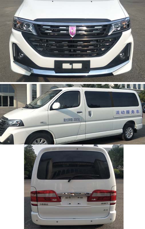 金杯牌金杯国六流动服务车采用底盘型号为的底盘,排放标准为,轮胎规格为,低能耗,高功率,满足国五的排放标准。