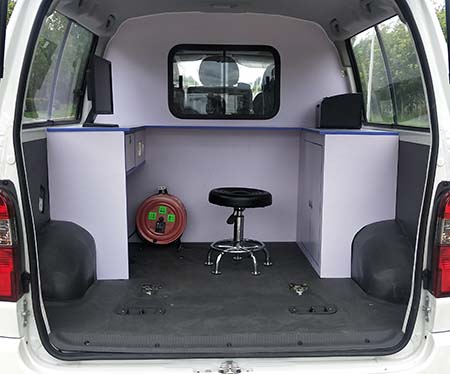 ABS型号:2D21-3755640;ABS生产企业:博世汽车部件(苏州)有限公司;发动机净功率值:90kW;选装描述:选装前散热器格栅,前雾灯,日间行车灯,选装玻璃,左拉门,镀铬门把手,选装后部灯具,后雨刮器,后风窗玻璃,倒车雷达(附照片1);选装高顶,选装后部灯具,高位制动灯,后风窗玻璃,后对开尾门,后牌照板,选装轮毂,该车可选装ETC车载装置(附照片2);内部照片(附照片3)。 ;专用功能及装置:装备有中间隔墙、工作台、文件柜、逆变电源总成、外接电源总成等专用设施,具有工作人员流动办公服务的功能;其他说明:VIN中LSY8DABC对应单拉门,单气囊;VIN中LSY8DACC对应单拉门,双气囊;LSY8AACC对应双拉门,双气囊。; |
