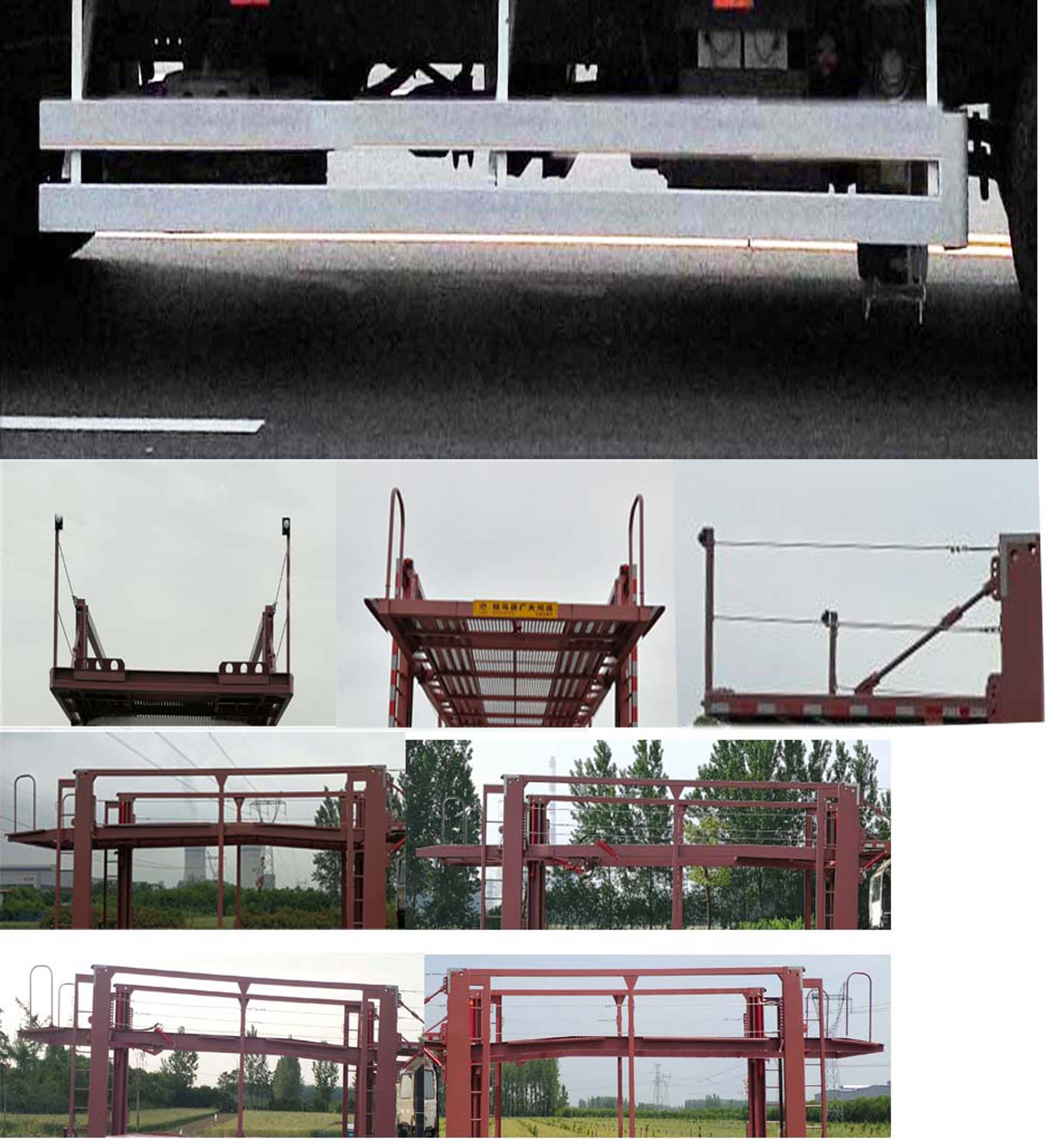侧防护装置材料为Q345,螺栓连接,后下部防护装置材料为Q345,后防护螺栓连接,断面尺寸140×60mm,离地高度为400mm;ABS生产厂家:上海万捷汽车控制系统有限公司,ABS型号: VIE ABS-II,安装具有卫星定位功能的行驶记录仪,该车具有拖曳功能,准拖挂车总质量15000,18000kg,中置轴挂防护网车的牵引杆深入量1900mm,中置轴牵引杆连接器的最大负荷1000kg.发动机型号与油耗对应关系:CA6DK1-32E5油耗值为37.5L/100km,CA6DL1-32E5油耗值为33.45L/100km,该车仅采用1900+4900,1900+5225轴距.选装后部结构.选装侧面带竖撑结构.选装铝合金侧防护网,选装侧防护结构及侧面结构,选装后部结构.选装前后上层平台结构.参数对应关系(外形长/前悬/轴距/后悬):12000/1710/1900+4900/3490,11665/1375/1900+4900/3490,12000/1375/1900+5225/3500 |