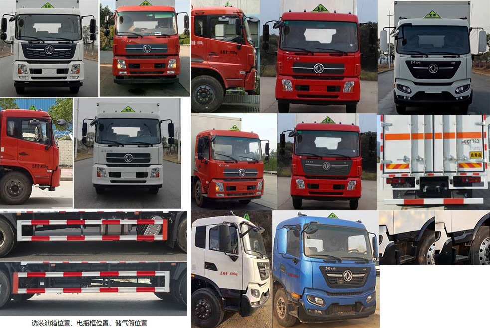 1、该车适用于运输危险品。厢体顶部封闭,不可开启。该车运输具有独立容器包装的易燃气体、非易燃无毒气体,运送危险品类项号为2.1,2.2。仅采用轴距(mm):4700,5000。2、侧,后防护材料为Q235,侧防护螺栓连接.后防护焊接,截面尺寸120×50mm,下边缘离地高470mm。整车外形长/轴距/前悬/后悬的对应关系为(mm):8600/4700/1430/2470,9000/5000/1430/2570。3、箱体侧面选装开门或不开门、单开门或双开门。厢体选装通风窗.选装后门样式。随底盘选装驾驶室前面罩,选装侧窗玻璃;驾驶室顶部中间三个装饰灯为选装件;前雾灯为选装件;驾驶室前脸扰流罩为选装件.选装后部灯具.选装油箱位置,选装电瓶框位置,选装储气筒位置,选装前下视镜,选装不同结构的车门裙板,选装驾驶室卧铺侧窗装饰.仅选用排气管前置、限速装置(限速80km/h)、前轮盘式制动及子午线轮胎的底盘;安装带有卫星定位功能的行驶记录仪;ABS型号/生产厂家:3631010-C2000/东科克诺尔商用车制动系统(十堰)有限公司。采用的发动机与油耗值(L/100Km)对应关系为: B6.2NS6B210/26.5,DDi50E190-60/23.9.后轴采用空气悬架。转向轮安装轮胎爆胎应急防护装置。该车型可选装ETC车载装置。 |