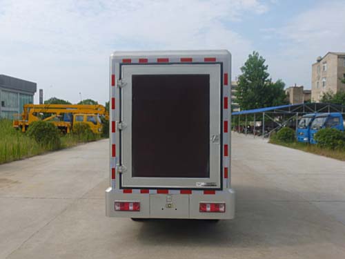 该车是用于广告宣传和科普宣传的专用车辆.顶部封闭,不可开启. 两侧可选装LED屏或侧展;两侧均可选装:LED升降或者不带升降屏, 滚轴灯箱,条屏,活动舞台;后部可选装LED条屏或灯箱或后展,通风口;前部选装LED条屏,左右后可选装上翻遮阳板,下翻吧台,亦可可选装开单或双开门,或者封闭;选装顶帽造型和尾部踏板.选装新前围.选装前格栅颜色和雾灯底座颜色. ABS控制系统型号/生产企业/控制方式:YF8/武汉元丰汽车电控系统有限公司/四通道式. |