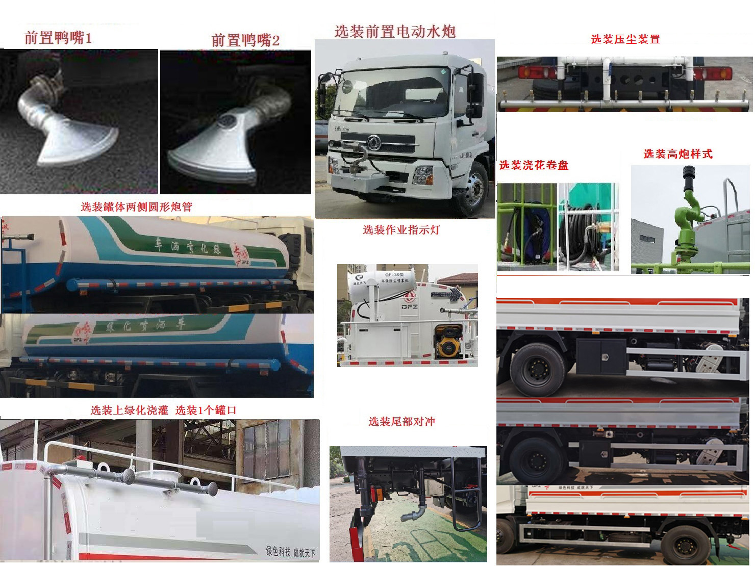 ABS型号:3631010-C2000,ABS 8,4460046450;ABS生产企业:东科克诺尔商用车制动系统(十堰)有限公司,东科克诺尔商用车制动系统(十堰)有限公司,威伯科汽车控制系统(中国)有限公司;选装描述:仅选轴距3950(mm),选装高度不同的驾驶室.选装前雾灯;驾驶室卧铺侧窗选装装饰板.驾驶室前脸扰流罩为选装件.驾驶室顶部中间三个装饰灯为选装件.选装驾驶室前面罩,选装上车踏板型式,选装无车门裙板照片,选装油箱、蓄电池箱安装位置,选装不同大小工具箱,选装压尘装置,选装浇花卷盘,选装后操作平台样式,选装后作业指示灯,选装尾部对冲,选装前置鸭嘴,选装罐体两侧圆形管筒,选装上绿化浇灌,选装罐体一个罐口,选装前置电动水炮时,前伸600mm;侧后防护情况:侧,后防护材质:Q235,连接方式:螺栓连接;后防护断面尺寸/离地高:120×80/400(mm);专用功能及装置:该车主要用于除霾和降尘,主要专用装置为水箱及喷雾装置总成,罐体有效容积9.56立方米,介质:水;罐体外形尺寸(长×长轴×短轴)(mm): 4000×2300×1500;前伸尺寸:0,600(mm);其他说明:整车外形长/前伸/前悬/后悬/轴距(mm)对应关系:7500/0/1430/2120/3950,7900/0/1430/2520/3950,8100/600/1430/2120/3950,该车安装具有卫星定位功能的行驶记录仪;该车型可选装ETC车载装置; |
