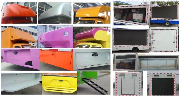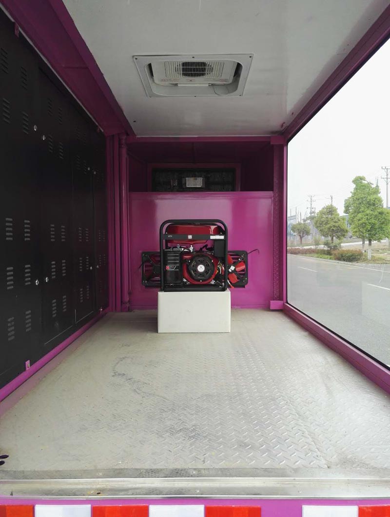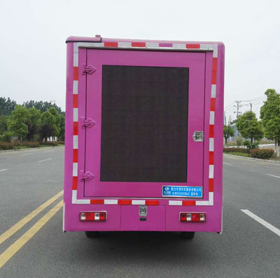 该车是用于广告宣传和科普宣传的专用车辆,专用装置为LED屏;选装保险杠,选装新款前面罩、前部大灯及保险杠;两侧可选装LED屏或侧展;两侧均可选装:LED升降或者不带升降屏, 滚轴灯箱,条屏,活动舞台;后部可选装LED条屏或灯箱或后展,通风口;前部选装LED条屏,左右后可选装上翻遮阳板,下翻吧台,亦可可选装开单或双开门,或者封闭;选装顶帽造型和尾部隐藏式踏板.该车采用轴距(mm)3000,3200;整车长/前悬/轴距/后悬(mm)对应关系为:5100/610(670)/3000/1490(1430);5300/610(670)/3200/1490(1430).ABS系统控制器型号及生产厂:CM4YL/广州瑞立科密汽车电子股份有限公司. |