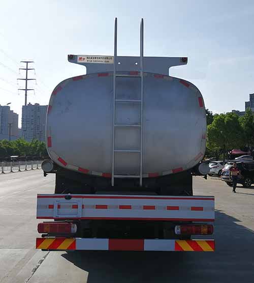 车身四周贴有反光标贴,充分保障行车安全,在罐体上还喷有易燃液体/气体的危险警示标志,警示过往车辆注意避让。