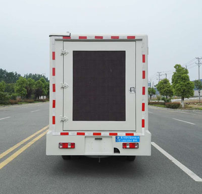该车是用于广告宣传和科普宣传的专用车辆,专用装置为LED屏;选装天窗时整车高度为2780mm;不选装天窗高度为2700mm;两侧选装斜坡包边时整车宽度为1930mm;两侧不选装斜坡包边时整车宽度为1800mm;车厢侧面可选装有可升降装置的LED全彩屏;车辆右侧上方选装LED单色条屏,左侧LED屏外选装防护玻璃,下方选装滚轴系统,后部可选装不同开门形式;可选装通风口;选装棱角包边厢体或圆角包边厢体选装保险杠,随底盘选装新款前面罩、前部大灯及保险杠;带OBD,该车仅采用轴距(mm):3400.ABS系统控制器型号及生产厂:CM4YL/广州瑞立科密汽车电子股份有限公司. |